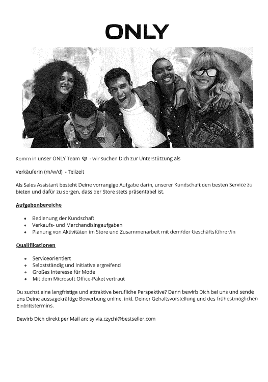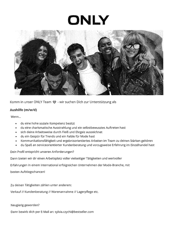 Bewirb Dich direkt per Mail an: sylvia.czychi@bestseller.com